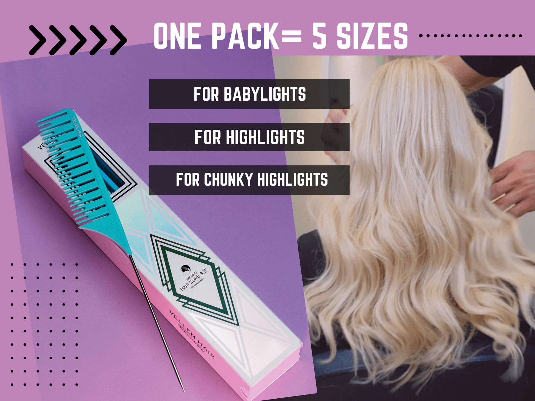 Die Kämme sind in 5 verschiedenen Größen (Größe 1 - 5) erhältlich, sodass für jede Strähnentechnik das passende Werkzeug zur Verfügung steht.